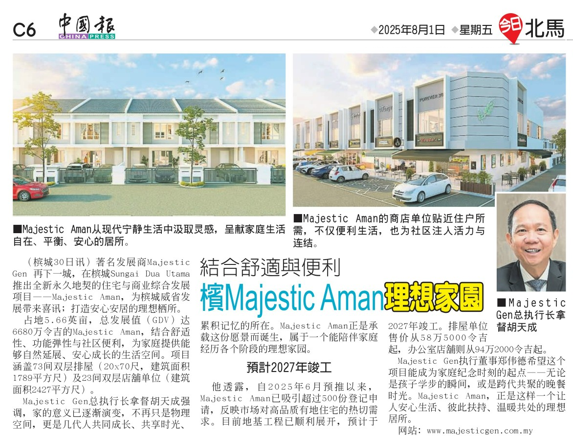 槟Majestic Aman理想家园,结合舒适于便利。